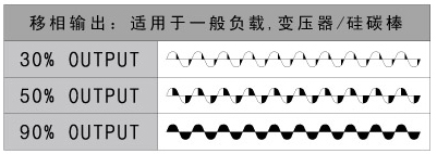 输出状态 以全波为单位,无半波成份。可达最高功率因数不产生斜波干扰,输出时电流表有抖动现象